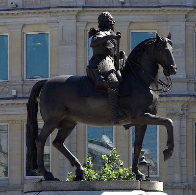 In reality, I can’t think of a more English spot for George Washington’s portrait. He stands in front of the National Gallery and looks down towards Whitehall and Charles I (who’s heading that way on horseback at the top of this post). To his right stands the first Scottish English King, James I (Charles’ father) but most days George can hear a fellow countryman or woman chatting in the square in front of him or eating a sandwich on the turf before him.