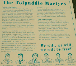 Oh, more about the Tolpuddle-ites! Good. Pictures of people around sculpture are often amusing–that funny little tension between the living and the not.